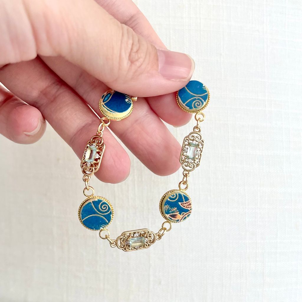 Most metal components are made with either 14k, 18k or 24k gold plated findings, Japanese tensha beads imported from Japan/ semi precious stones/ glass/ premium silk tassels/ premium polymer clay.