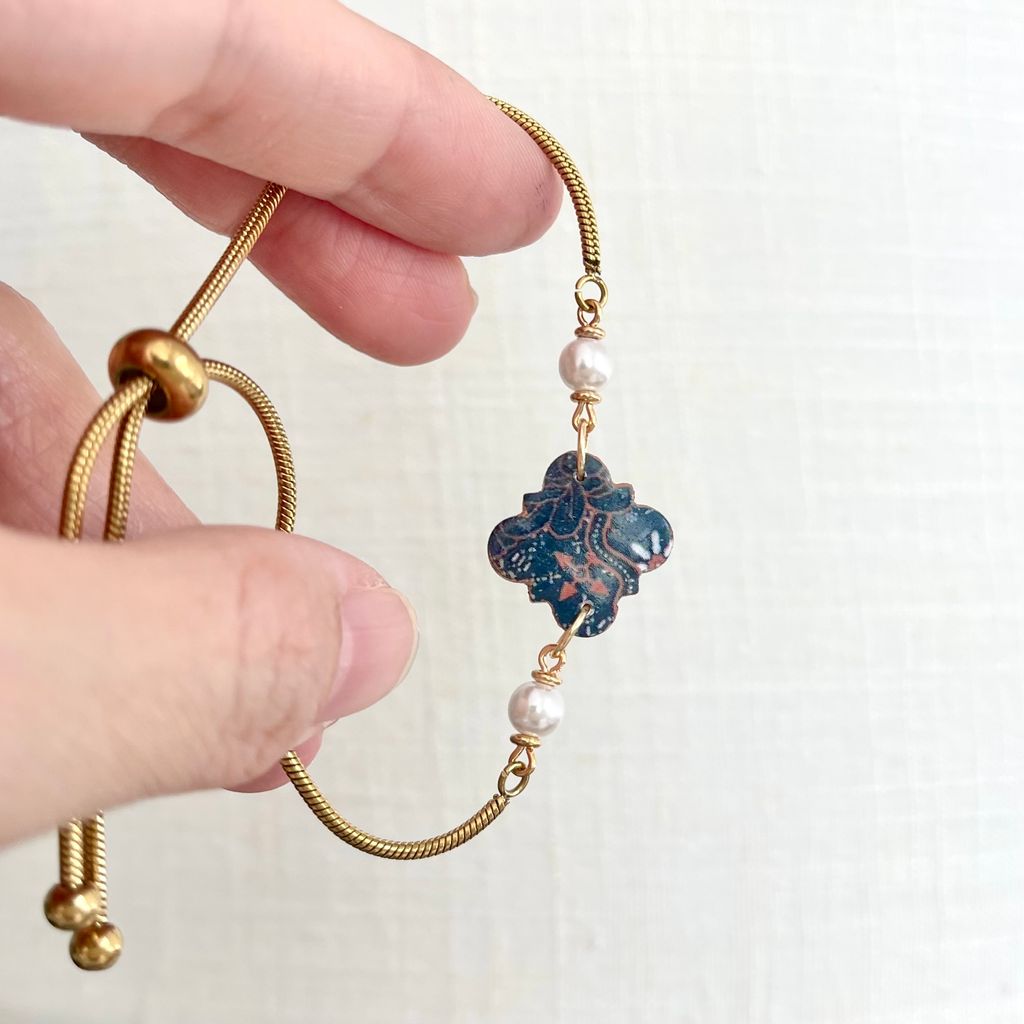 Boho Bracelets: A stunning blend of image transfer batik charms and lustrous pearls. A little bit of "tradisi" on your wrist. πΏ
