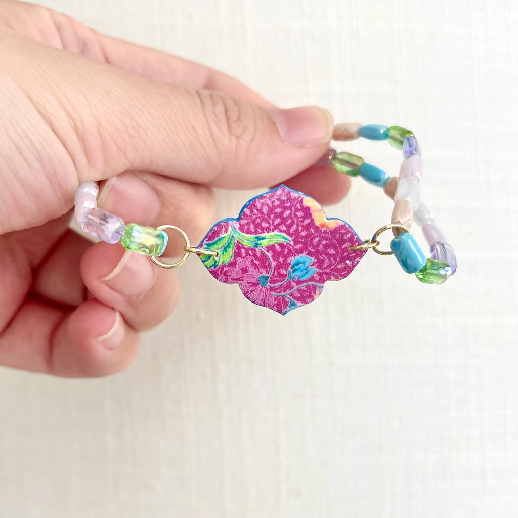 Boho Bracelets: A stunning blend of image transfer batik charms and lustrous pearls. A little bit of "tradisi" on your wrist. πΏ