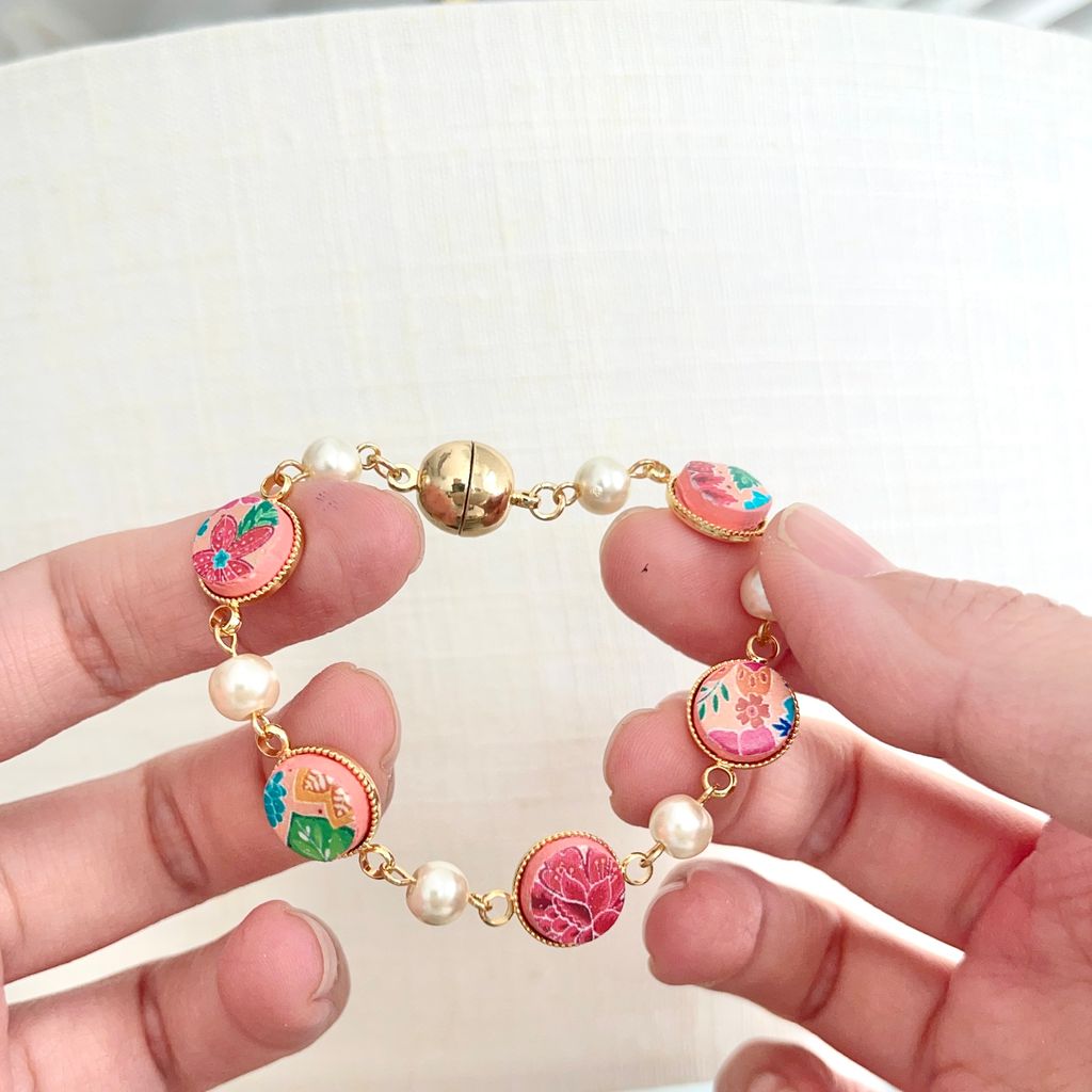 • Boho Bracelets: A stunning blend of image transfer batik charms and lustrous pearls. A little bit of "tradisi" on your wrist. πŸ“Ώ
