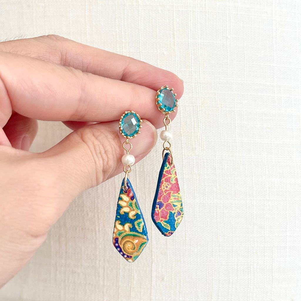 Most metal components are made with either 14k, 18k or 24k gold plated findings, 925 silver post, Japanese tensha beads imported from Japan/ semi precious stones/ glass/ premium silk tassels/ premium polymer clay.