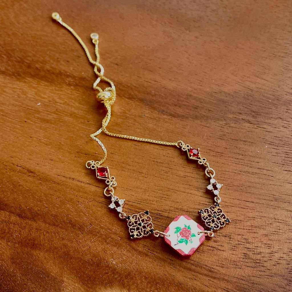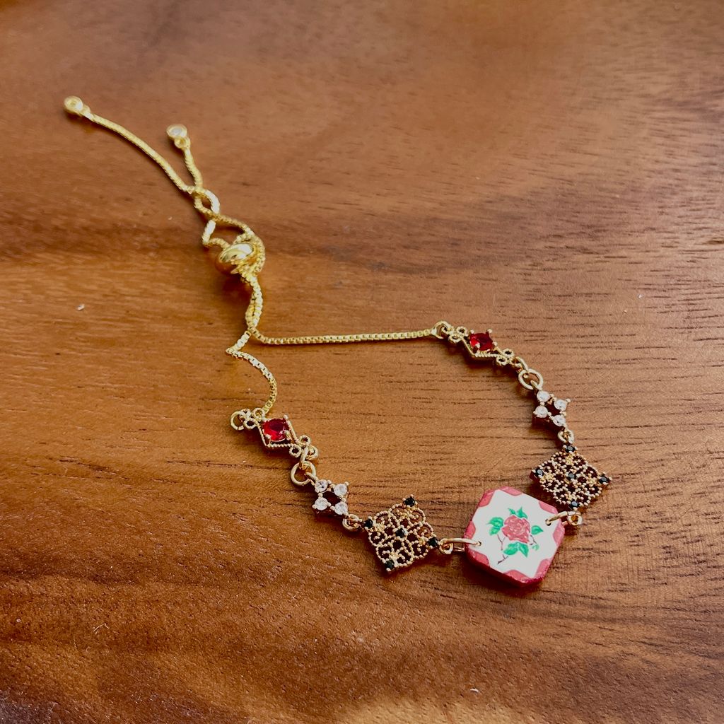 Nyonya Tiles & Tales Red Links Adjustable Bracelet