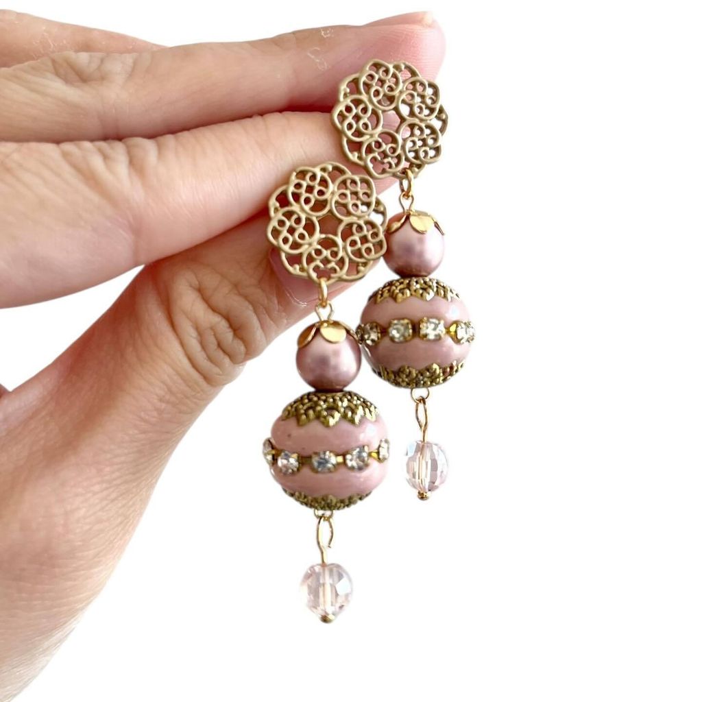 Most metal components are made with either 14k, 18k or 24k gold plated findings, 925 silver post, Japanese tensha beads imported from Japan/ semi precious stones/ glass/ premium silk tassels/ premium polymer clay.