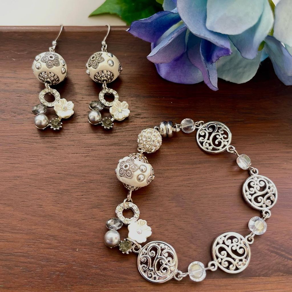 Roshni Baubles White Bouquet Earrings or Bracelet