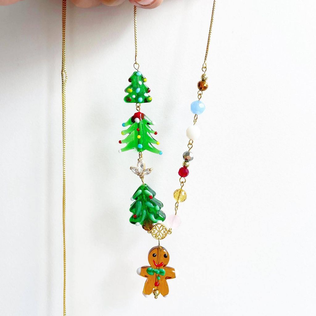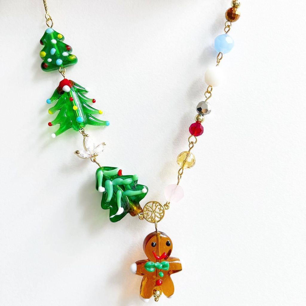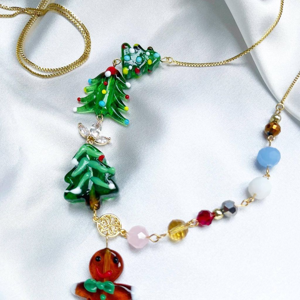 Each piece is a masterpiece, featuring lampwork beads that capture the essence of the season. Dive into a world of enchantment with gingerbread men and whimsical Christmas trees adorning earrings, a charm bracelet, and necklaces. βοΈ