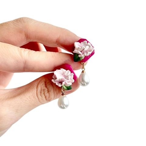 Petals & Prosperity Dainty Peony Drop Earrings
