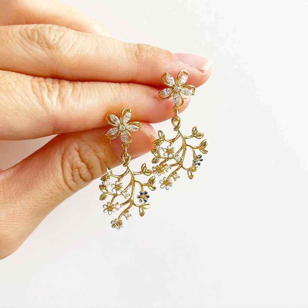 Most metal components are made with either 14k, 18k or 24k gold plated findings, 925 silver post, Japanese tensha beads imported from Japan/ semi precious stones/ glass/ premium silk tassels/ premium polymer clay.