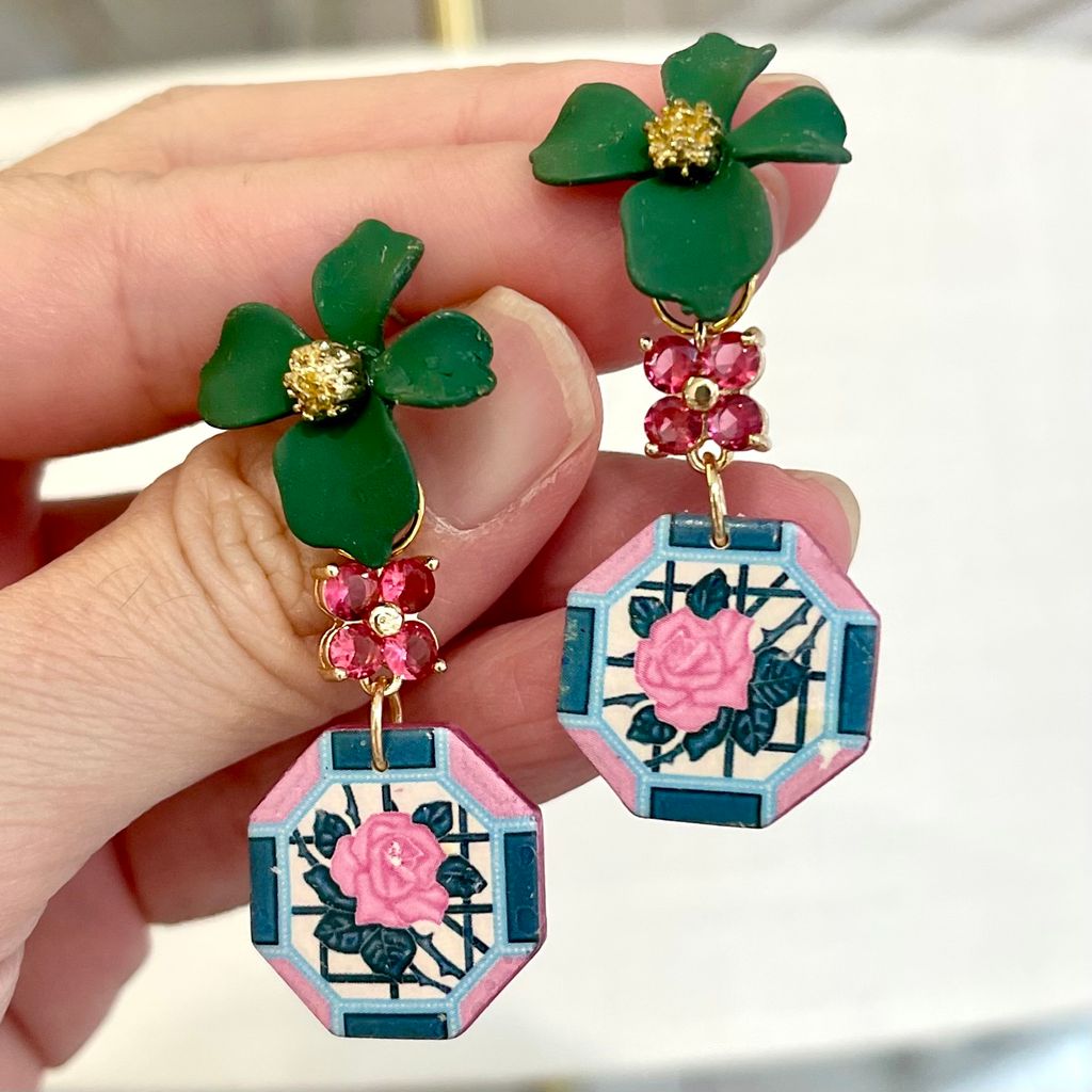 Nyonya Tiles & Tales Seagreen Pink Link Earrings